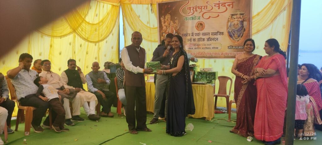 कोरबा। राष्ट्रीय युवा दिवस, स्वामी विवेकानंद जी की जयंती के शुभ अवसर पर प्रगतिशील जायसवाल कनौ. कलार समाज के "वनभोज आयोजन समिति" तथा समाज के युवा संगठन "एकात्म कलार युवा मंच" के संयुक्त तत्वाधान में सतरेंगा जल विहार क्षेत्र, कोरबा में "वसुंधरा वंदन -वनभोज" का आयोजन किया गया कार्यक्रम का शुभारंभ वरिष्ठ जनों तथा मातृशक्तिओं द्वारा समाज के आराध्य राजराजेश्वर भगवान सहस्रबाहु तथा स्वामी विवेकानंद जी के चित्र पर पुष्प अर्पित कर विधिवत दीप प्रज्ज्वलन और पूजन कर किया गया, उसके बाद सभी सदस्यों ने जलपान किया तत्पश्चात बच्चों, युवा साथियों, महिलाओं तथा वरिष्ठ सदस्यों के लिए विभिन्न बौधिक स्तर के गतिविधियों तथा खेल का क्रमबद्ध आयोजन किया गया उसके पश्चात् संस्था के संरक्षक श्री शरद कौशिक जी की माता श्रीमती रुखमणी देवी के आकस्मिक निधन पर श्रद्धांजलि सभा कर मृतात्मा की शांति हेतु दो मिनट का मौन धारण किया गया, उसके बाद सभी ने भोजन किया। अनेक गतिविधियों को आगे बढ़ते हुए कोरबा मेडिकल कॉलेज के प्रथम देहदानी स्व. प्रदीप महतो जी को उनके इस नेक कार्य के लिए स्मरण करते हुए मरणोपरांत "कलार गौरव सम्मान" से सम्मानित किया गया तथा उनके सुपुत्र महेंद्र महतो तथा पुत्रवधु प्रीति महतो को उनके द्वारा भी देहदान के लिए किये गए संकल्प हेतु "एकात्म कलार सम्मान योजना" के तहत सम्मानित किया गया।