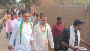 वार्ड क्रमांक 1 मे जनसम्पर्क के दौरान कांग्रेस नेता रजनीश तिवारी एवं पार्षद प्रत्याशी कमलेश जायसवाल के साथ।