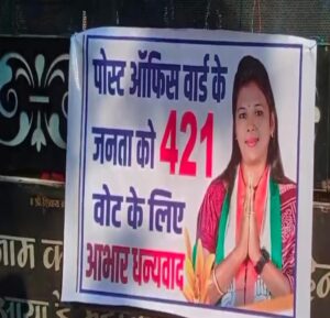 धमतरी नगर निगम में पार्षद उम्मीदवार मनीषा पटेल ने चुनाव हारने के बाद जश्न मनाना शुरू कर दिया। जिसने भी यह नजारा देखा वह हैरान रह गया। मनीषा पटेल को कांग्रेस ने टिकट दिया था। वह वार्ड नंबर 27 से उम्मीदवार थीं। चुनाव में उन्हें 421 वोट मिले। वह 45 वोटों से अपना चुनाव हार गईं। चुनाव हारने के बाद उन्होंने विजेता प्रत्याशी से पहले ही अपना जुलूस निकाला।