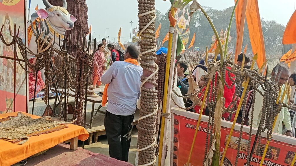 शिव नगरी प्रयागराज में महाकुंभ मेले में 7 करोड़ 51 लाख रुद्राक्ष की मालाओं से बने 12 ज्योतिर्लिंग दूर-दूर से श्रद्धालुओं के लिए आकर्षण का केंद्र बने हुए हैं. महाकुंभ के सेक्टर 6 में बने हर ज्योतिर्लिंग 11 फीट ऊंचा, 9 फीट चौड़ा और 7 फीट मोटा है, जिसके चारों ओर 7 करोड़ 51 लाख रुद्राक्ष की माला लिपटी हुई है. ये मालाएं 10,000 गांवों में घूमकर और मांगकर एकत्र की गई हैं।