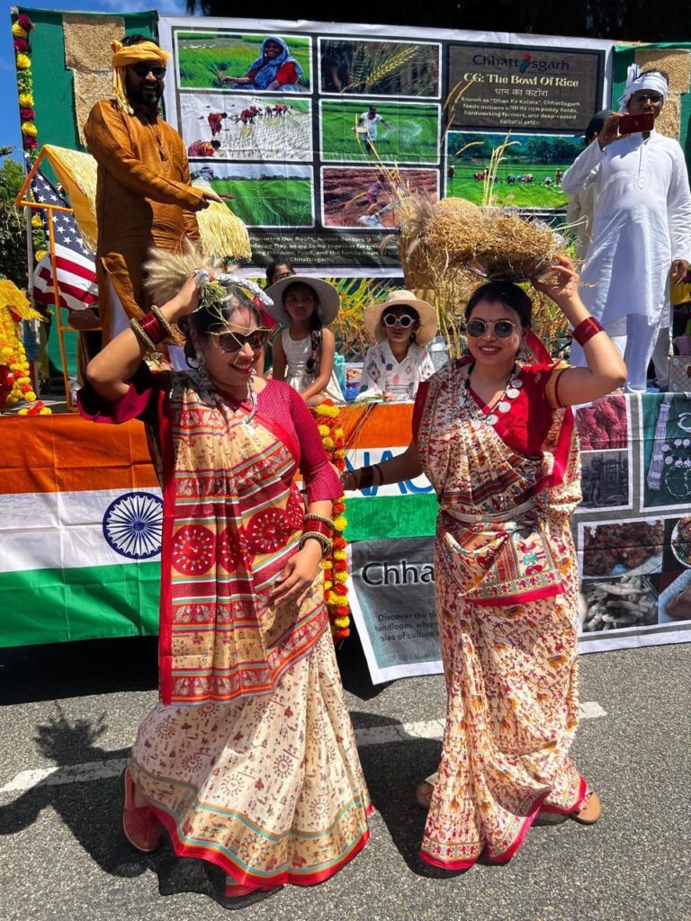 नमिता खंडेलवाल (अध्यक्ष, नाचा वॉशिंगटन चैप्टर) के नेतृत्व में सिएटल परेड में छत्तीसगढ़ के दो प्रमुख गौरव प्रस्तुत किए गए – भिलाई इस्पात संयंत्र और 🍚 “धान का कटोरा” (राइस बाउल ऑफ इंडिया).