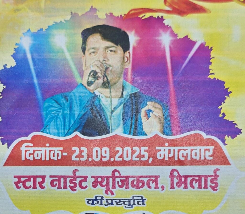 बजरंग चौक दुर्गा उत्सव समिति द्वारा स्कूल मैदान में आज भाव आर्केस्ट्रा का आयोजन किया गया है। भिलाई दुर्ग से आईस्टार नाईट ऑर्केस्ट्रा टीम द्वारा आज लोगों का मनोरंजन किया जायेगा।