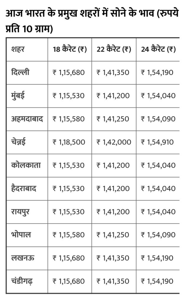 प्रमुख शहरों में आज का गोल्ड रेट (Today’s Gold Rates in Major Cities)